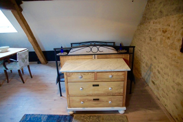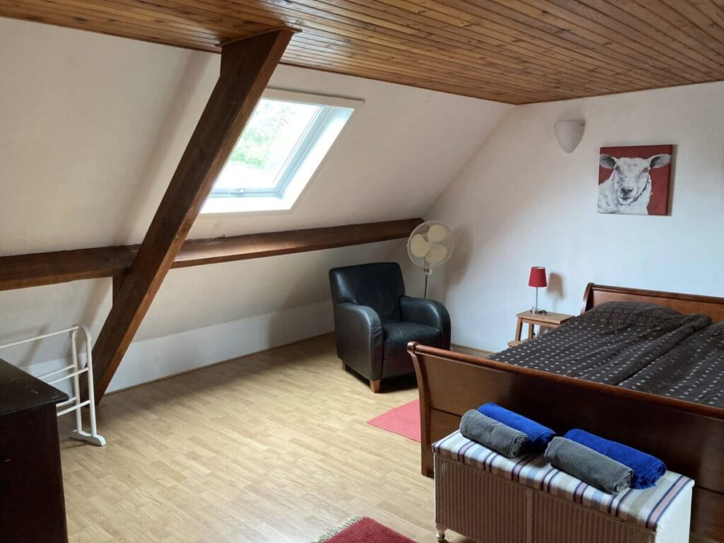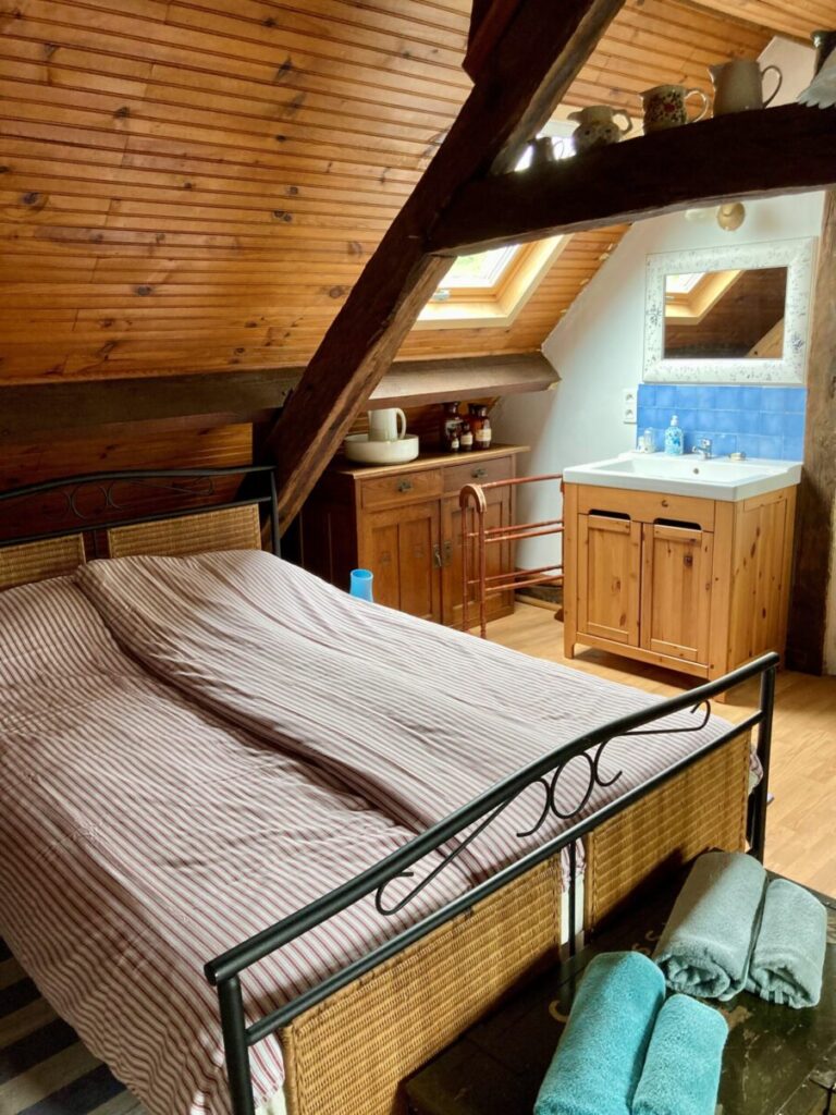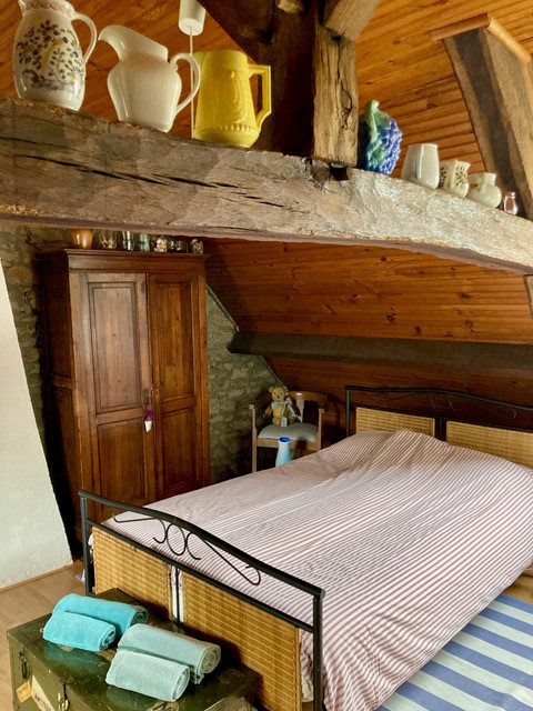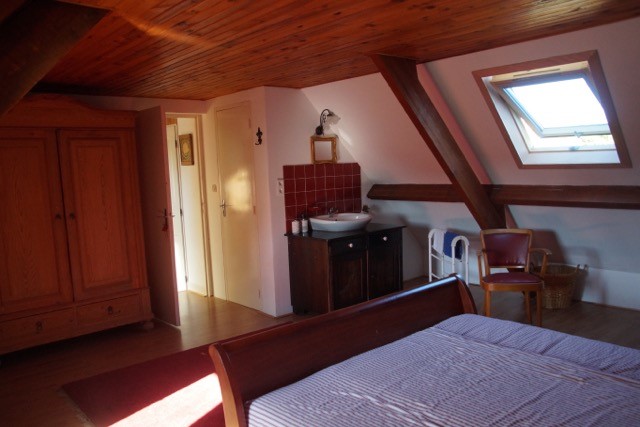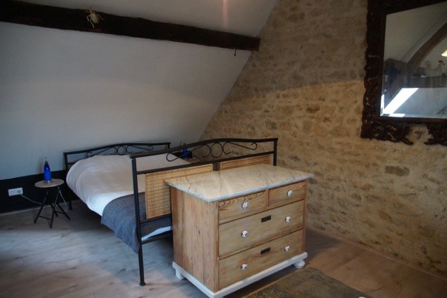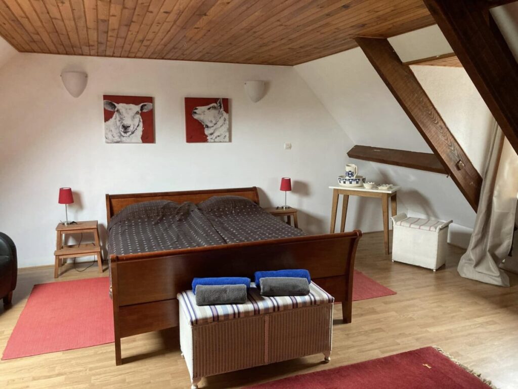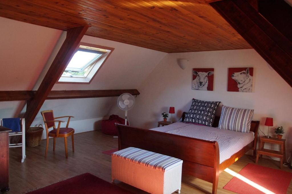 de rode slaapkamer bevindt zich in het bovengedeelte van het woonhuis.